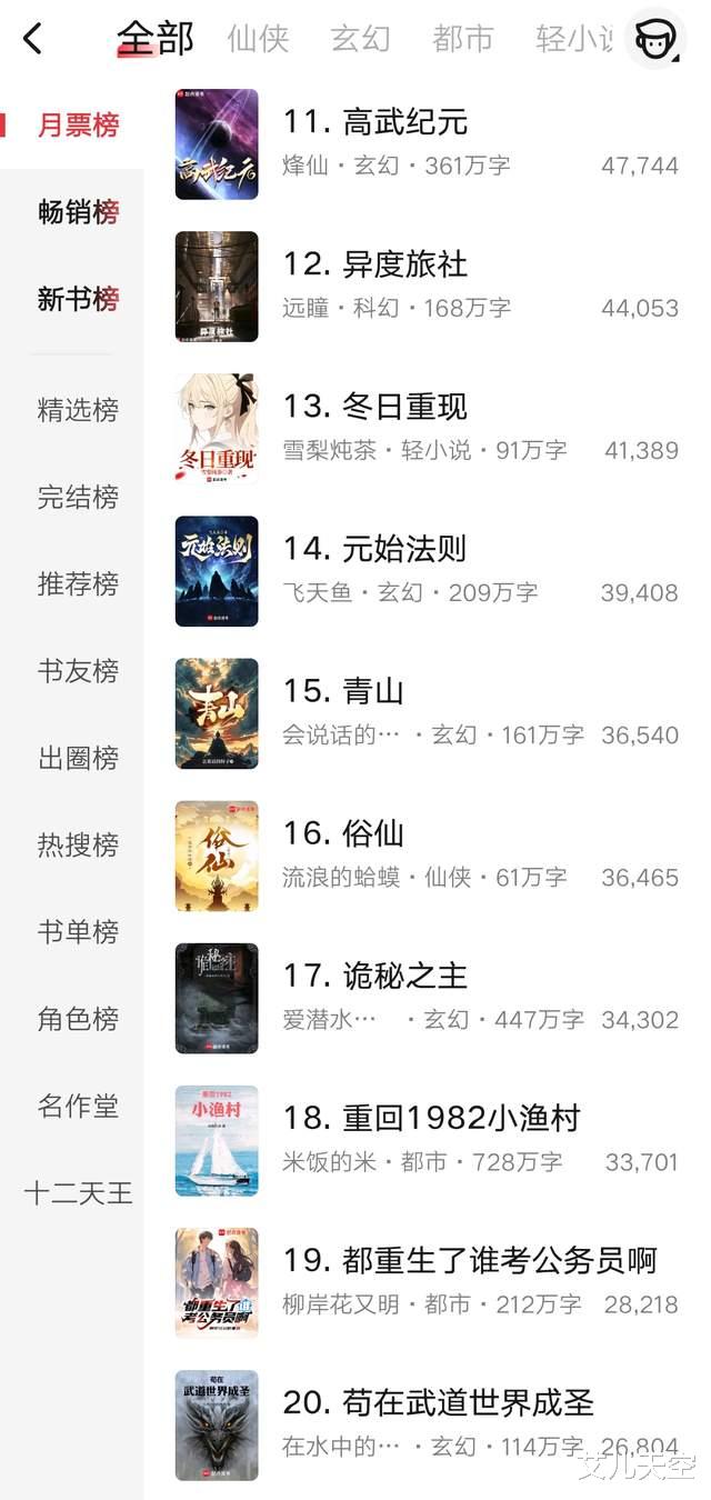 2、诡秘之主第17名第11到20名,诡秘之主这个月开局没在十三、十四徘徊,落到了第17名。