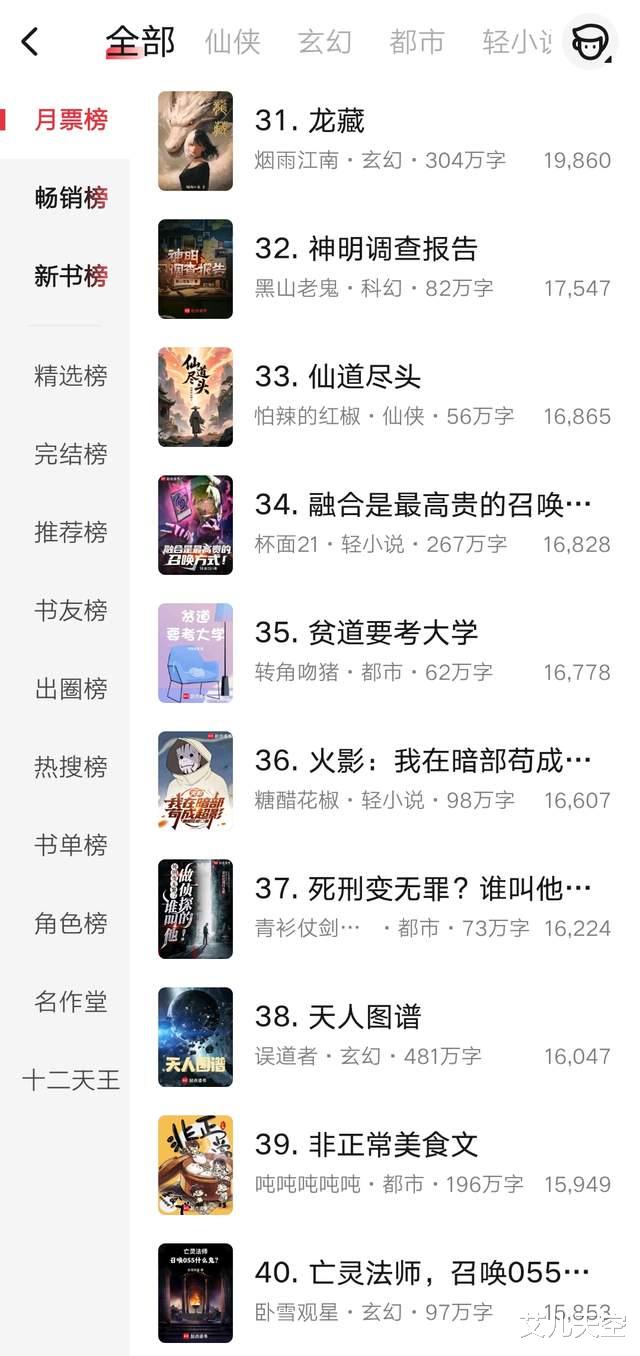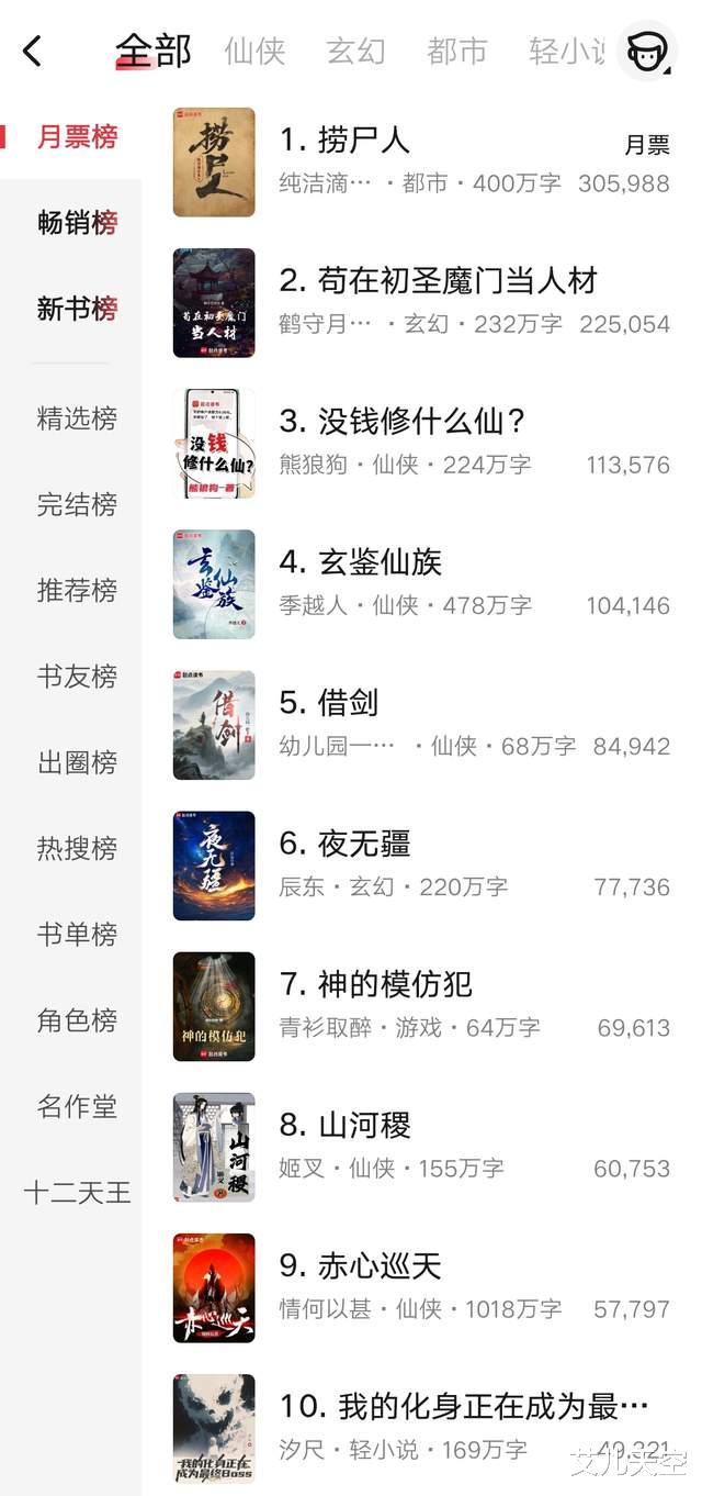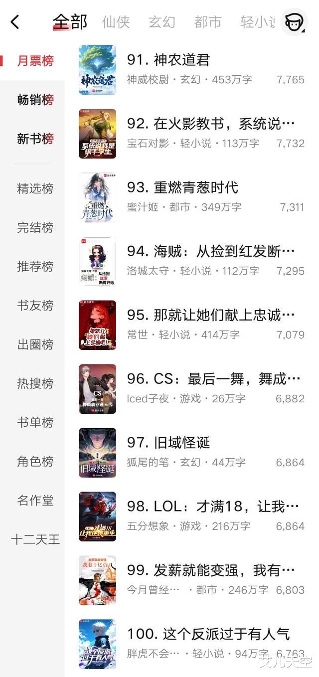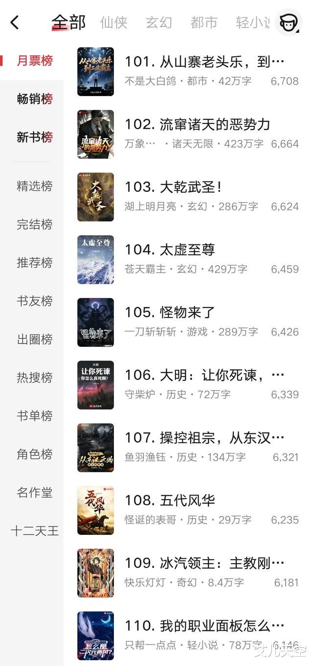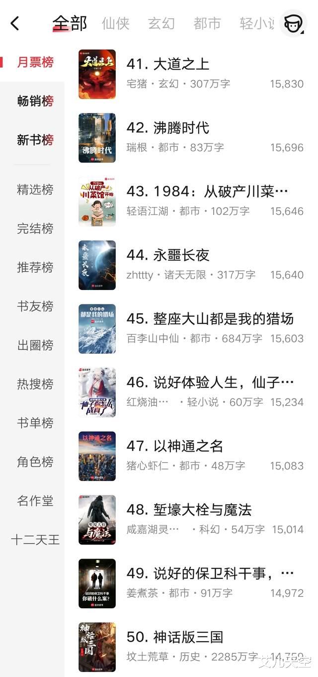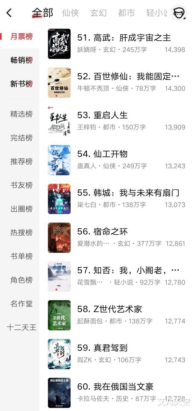 误道者的《天人图谱》不知不觉都往五百万字去了,成绩倒是挺稳定的。