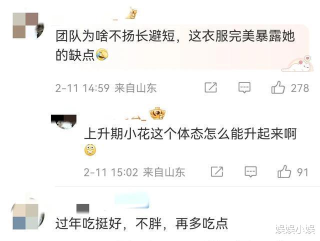 目睹她此次亮相,众多网友提出疑问:“正处于上升期的小花,这样的体态是如何支撑其事业发展的?”