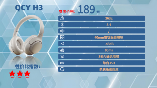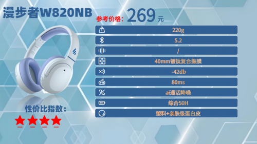 头戴式耳机哪个牌子音质好?这款耳机蓝牙5.3芯片保障了日常连接的稳定与低延迟;约246g的机身配以蛋白皮耳罩和记忆棉,佩戴舒适包裹性好;混合主动降噪(38dB深度) 有效应对通勤和办公常见噪音,且可切换环境声模式;音质则依靠40mm动圈单元,调校均衡,人声和低频表现突出,但高频细节和解析力尚有提升空间。其续航能力强劲,关降噪80小时、开降噪70小时,配备USB-C充电口和3.5mm有线接口,支持折叠收纳。需要注意的是,它无法同时连接两台蓝牙设备,切换需手动,且机身的塑料感和折叠结构的长期耐用性是潜在考量点。