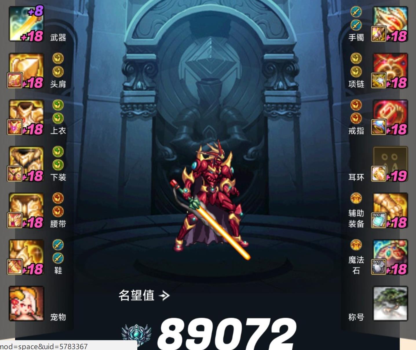 ②防具+首饰+辅助装备:一身+18黄金乡;无变化。