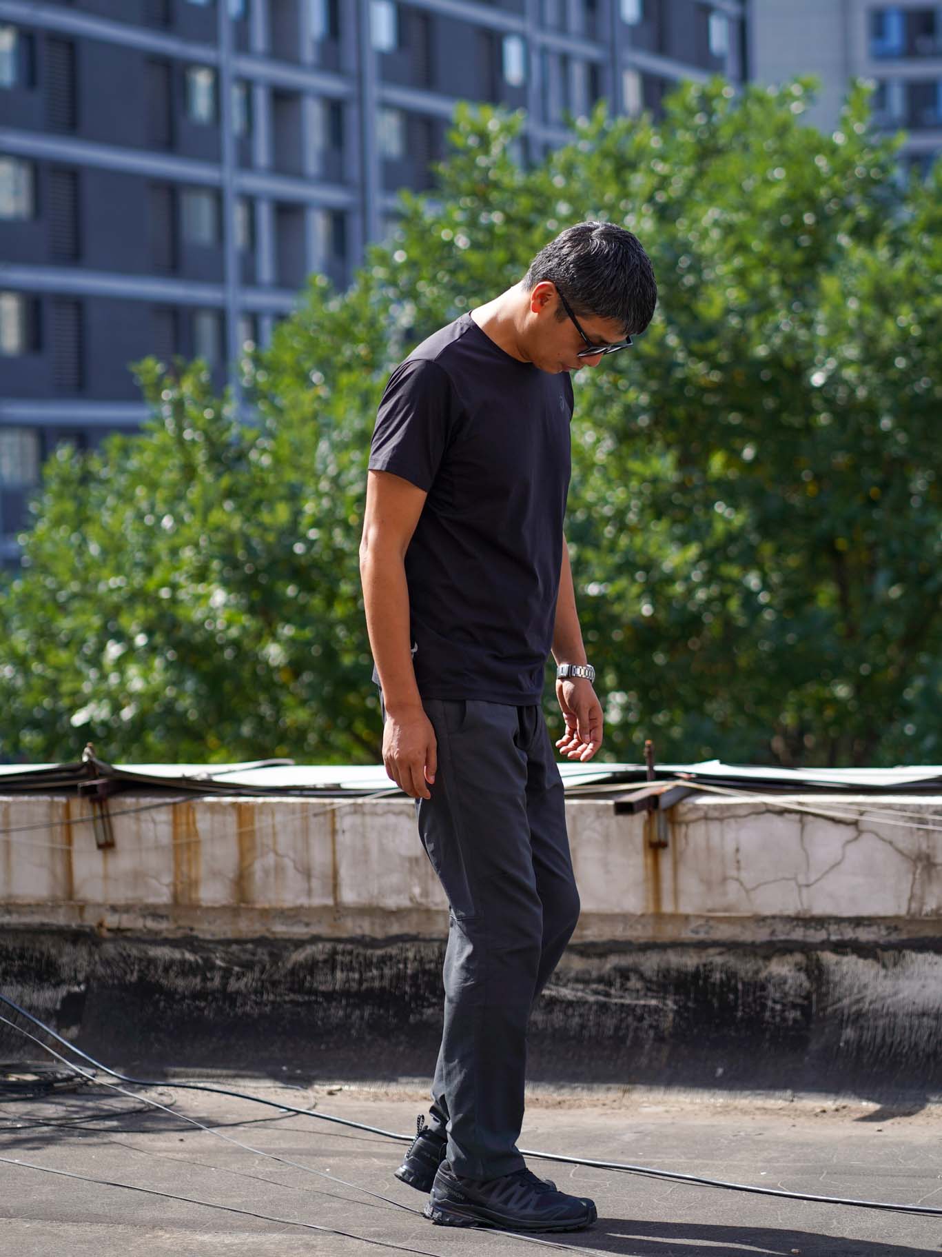 这条单导单湃裤子的一个亮点就是可商务可休闲的设计,可以搭配皮鞋,同样可以搭配一双户外鞋穿着。而且要知道这条裤子有着透气、防晒的属性,把它当作一条户外裤子完全没问题。