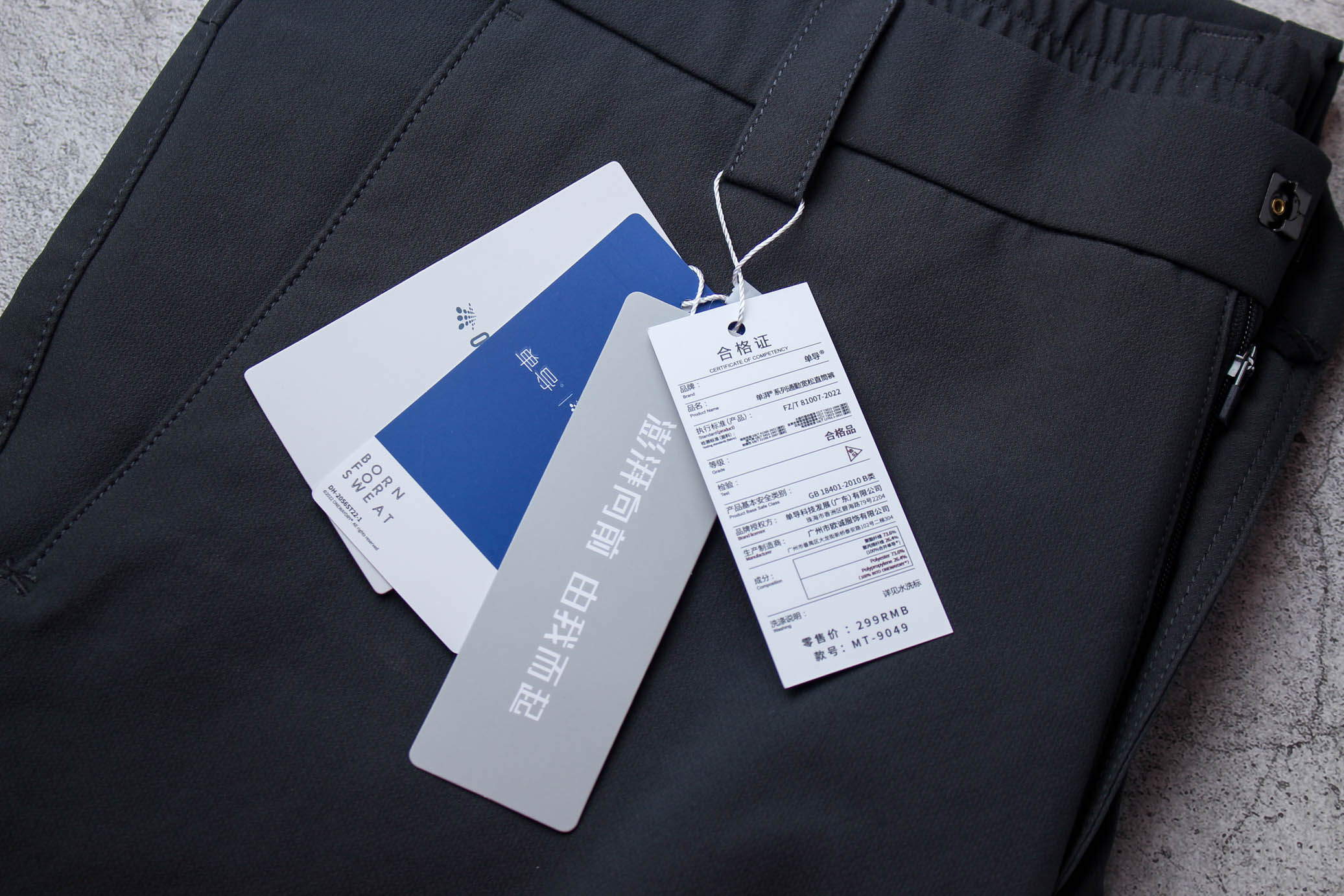 裤子的做工很不错,每一处针脚都均匀细密,走线流畅自然,没有丝毫多余的线头。裤子上还配备了防崩开裤钩,拉链也是YYK拉链,用料同样不马虎。