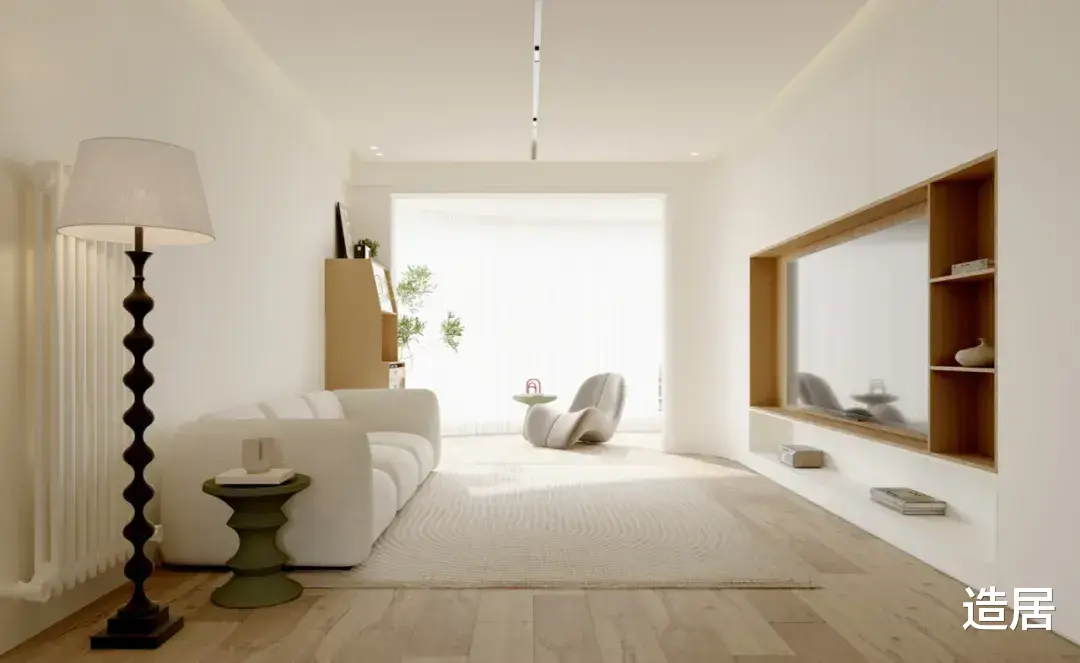墙面留白是提升高级感的关键,木质风墙面别做满,比如电视背景墙做半墙木饰面,剩下的墙面留白,或挂一幅简约的装饰画;地面优先选浅色系,避免深色地面显压抑。