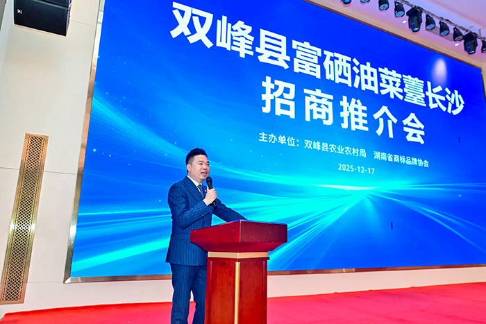 刘群群在讲话中指出,富硒油菜薹是双峰县近年来重点发展的特色农业产业,具有较高的经济价值和健康属性,已成为助农增收和乡村振兴的新亮点。举办招商推介会,目的是让更多朋友了解双峰、青睐双峰、投资双峰,希望用招商推介这个促进合作、增进友谊的平台,依托社会各界人士的桥梁纽带作用,助力双峰县乡村振兴和农业产业高质量发展。