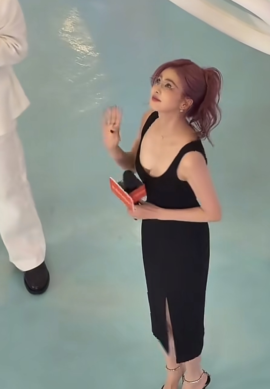 一改之前的黑长直,粉色头发,黑色长裙,高跟鞋,太纯欲了。