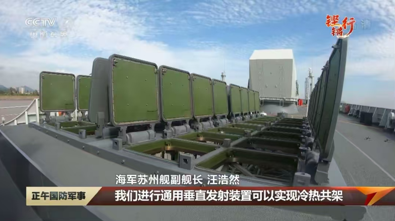 政委张胜威中校在镜头中的介绍,突出了新舰的远程打击能力和在防空反导中能守护“我舰艇编队安全”,同时拥有“编队指挥作战能力”。