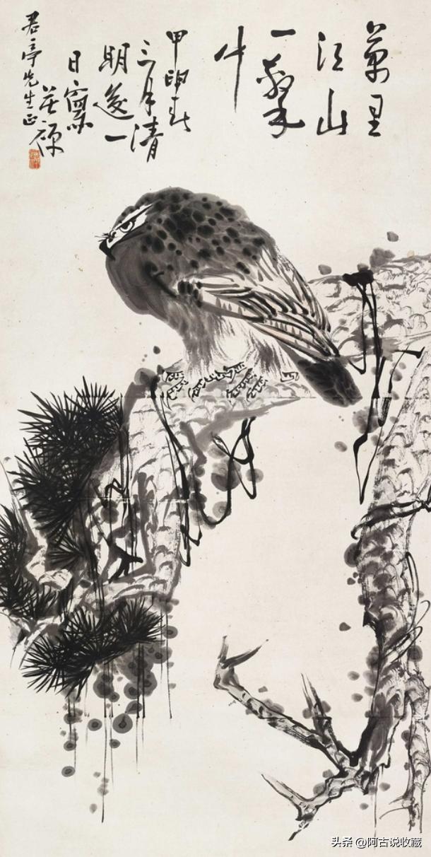 嘉德2024拍卖中,价格最高的一幅李苦禅先生的作品是甲申(1944年)作 的《万里江山一击中》 ,成交价RMB63.25W,一起来欣赏一下。