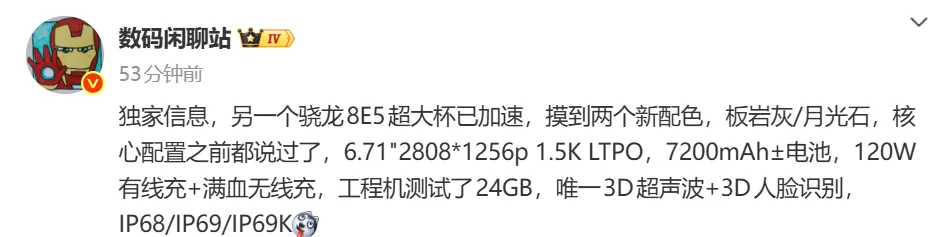 电池采用的是≥7200mAh容量,很可能是超大杯里最大的电池(就看OPPO Find X9 Ultra的电池了),120W有线充电,满血无线充电,不知道是不是100W
