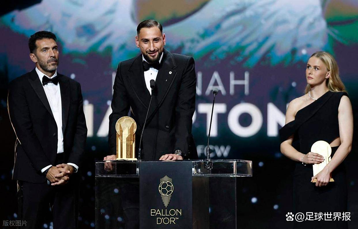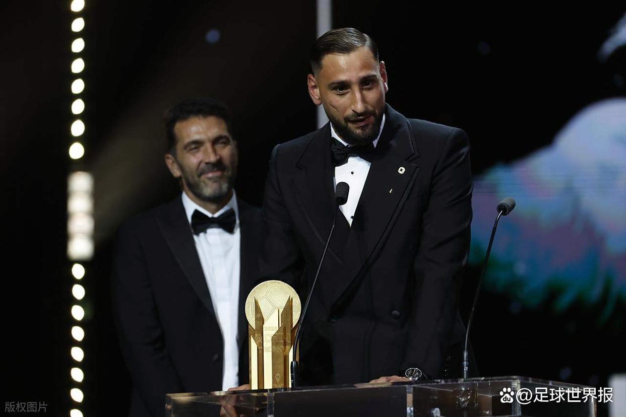 2025 年 9 月 23 日凌晨,巴黎夏特莱歌剧院的水晶吊灯缓缓暗下,聚光灯如追光般骤然锁定在吉安路易吉・多纳鲁马身上。当《法国足球》主编用沉稳的语调念出 “Gianluigi Donnarumma” 时,这位刚过完 25 岁生日的意大利门将深吸一口气,快步走上领奖台 —— 第二次捧起雅辛奖奖杯的瞬间,他指尖轻轻摩挲着杯身上的纹路,眼中映着台下队友们挥舞的巴黎球衣。