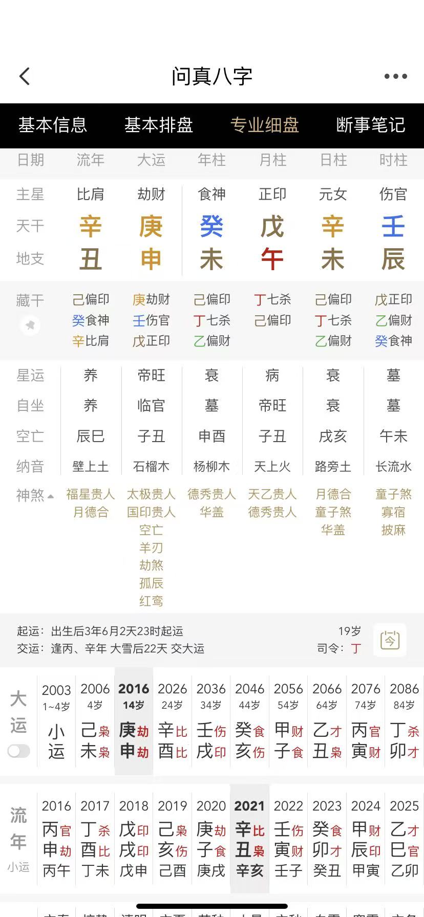 答:老实说走庚申,辛酉这种运不好,要想反身就得走才官运,可是全局土中,来个才也平衡不了个啥,土多木折,那走官星怎么样,不怎么样,火透出,食伤克官,哪哪都是毛病,就是说命局决定了不会有好的层次。大的方向定了,但是穷人在这个层次内走才官确实是好的。16.17走官杀,食伤虽然克官,但官终究使我们用的,来了就是好的,不过容易工作不稳定,口舌是非多一点。18年戊戌,未戌刑,土更重,抑郁症,父母健康出问题。22-25走食伤财官略好,下步大运有辛酉,2627可以,32-35可以,其他流年平平,天花板就是在人生中算不错,可以把握。