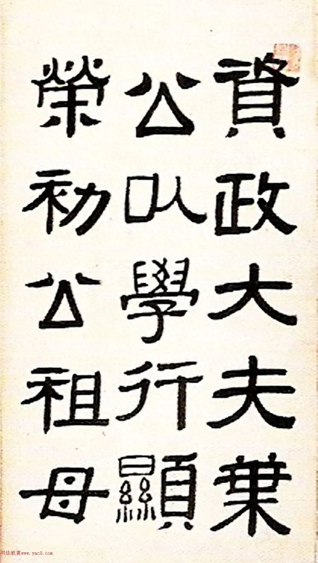 清代著名书法家伊秉绶隶书《皇清晋封资政大夫盐运使司衔叶先生墓表》,该墓表为纪念叶廷勋而立,由伊秉绶撰写并书写,完成于嘉庆十六年(1811年)。此作品展现了伊秉绶在隶书领域的卓越成就,其风格精秀古媚且高古博大,体现了独特的艺术价值。