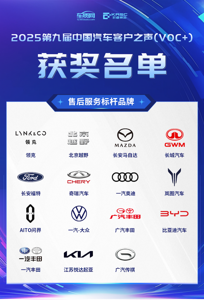 会议现场揭晓了2025第九届中国汽车客户之声(VOC+)售后服务满意度奖、售后服务标杆品牌和卓越贡献奖。