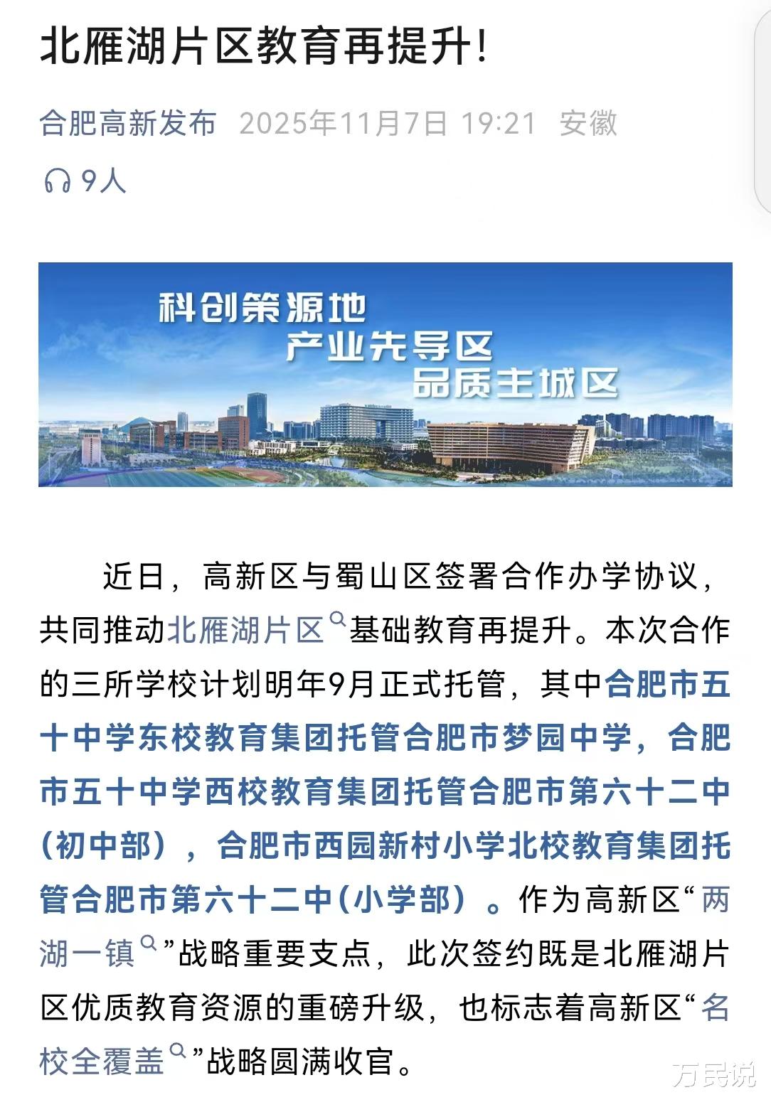 面对如此密集且高质量的名校资源导入,相信很多合肥的网友会问:名校托管,究竟能为合肥高新区的教育质量带来怎样的改变?