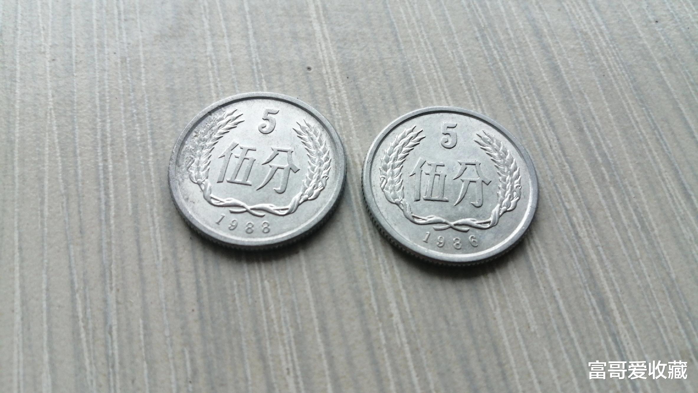 1985年的“5分硬币”,现在已经很少使用了,虽然还未退市停用,但它的发行数量非常多,一些品相好的硬币,也具有一定的收藏价值。