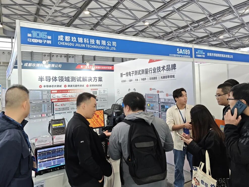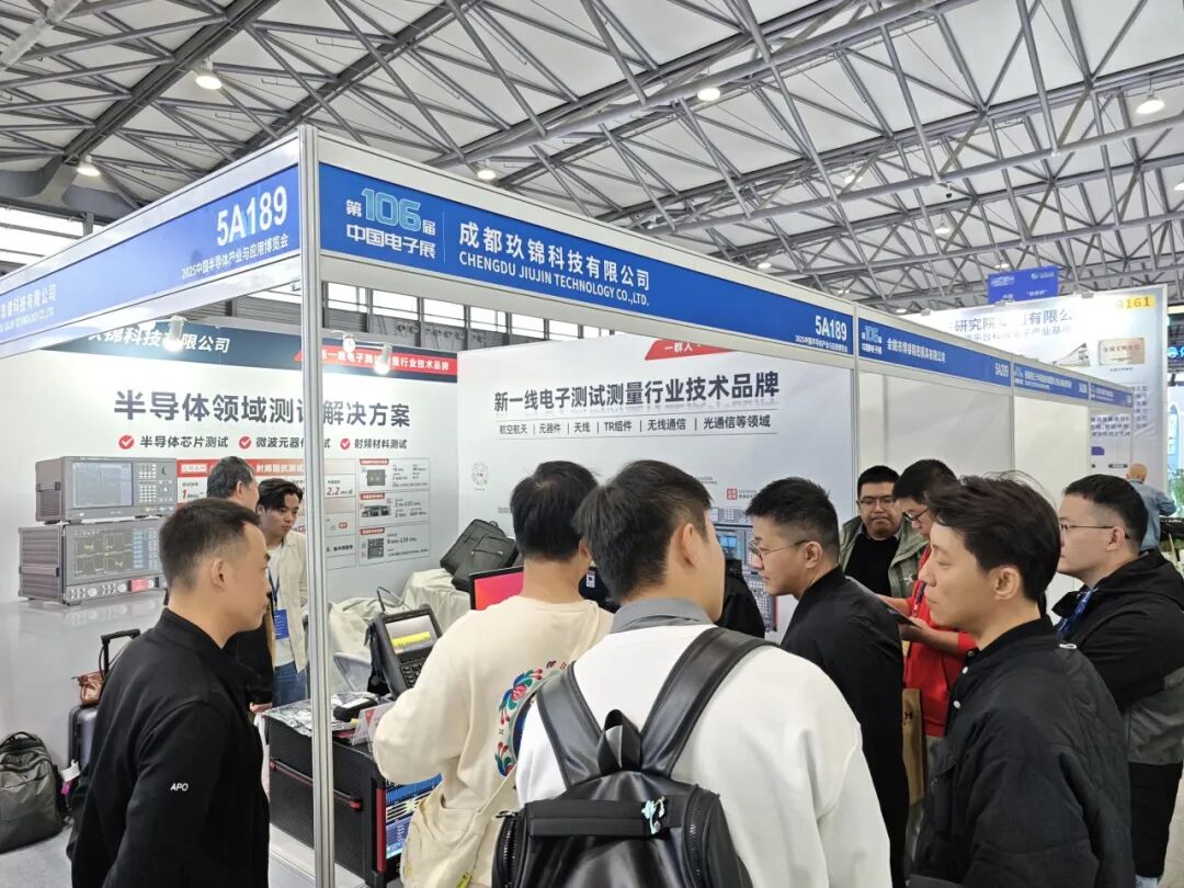 2025年11月5日至7日,第106届中国电子展在上海新国际博览中心隆重举行。成都玖锦科技有限公司(以下简称:玖锦科技)携多款明星产品及测试系统亮相展会,展示了公司在半导体测试领域的最新成果。开展首日,玖锦科技展位就吸引了众多来自全球的行业专家、企业代表及媒体关注,彰显了其在半导体测试领域中的硬核实力。