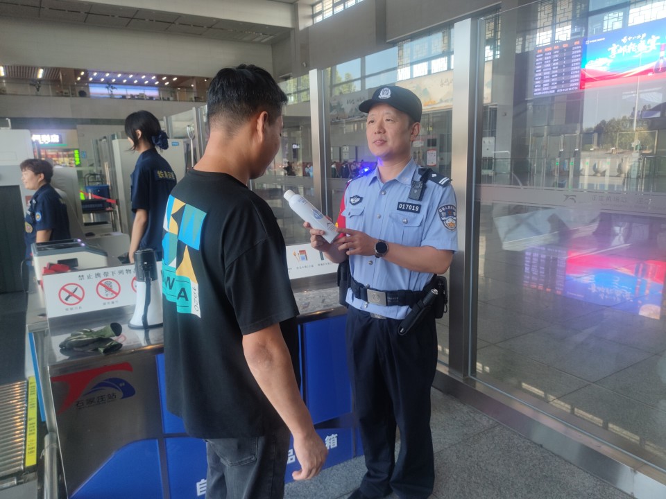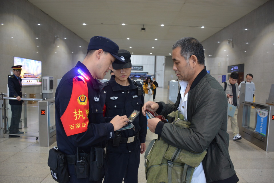 正定站派出所民警向进站旅客普及安全知识。都少康/摄