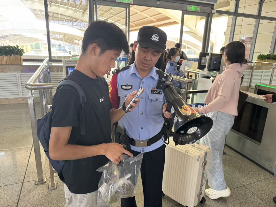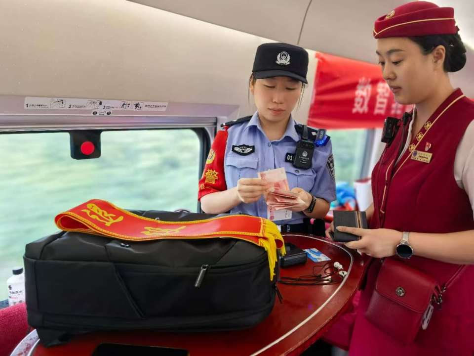 乘警支队民警为旅客找回遗失财物。许田媛/摄