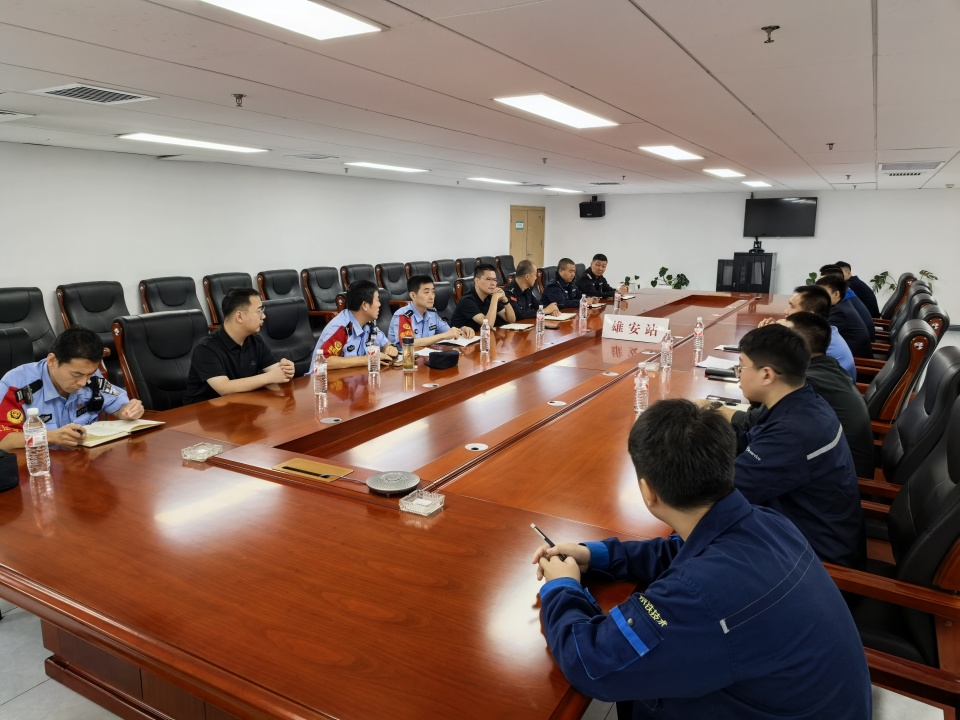 雄安站派出所协调高新区管委会、雄安站枢纽片区公安分局、雄安站客运部门、消防应急救援部门、安检公司等多家路内外相关单位召开联席会议,就整合资源、协调行动、全面强化联勤联动进行座谈会商。