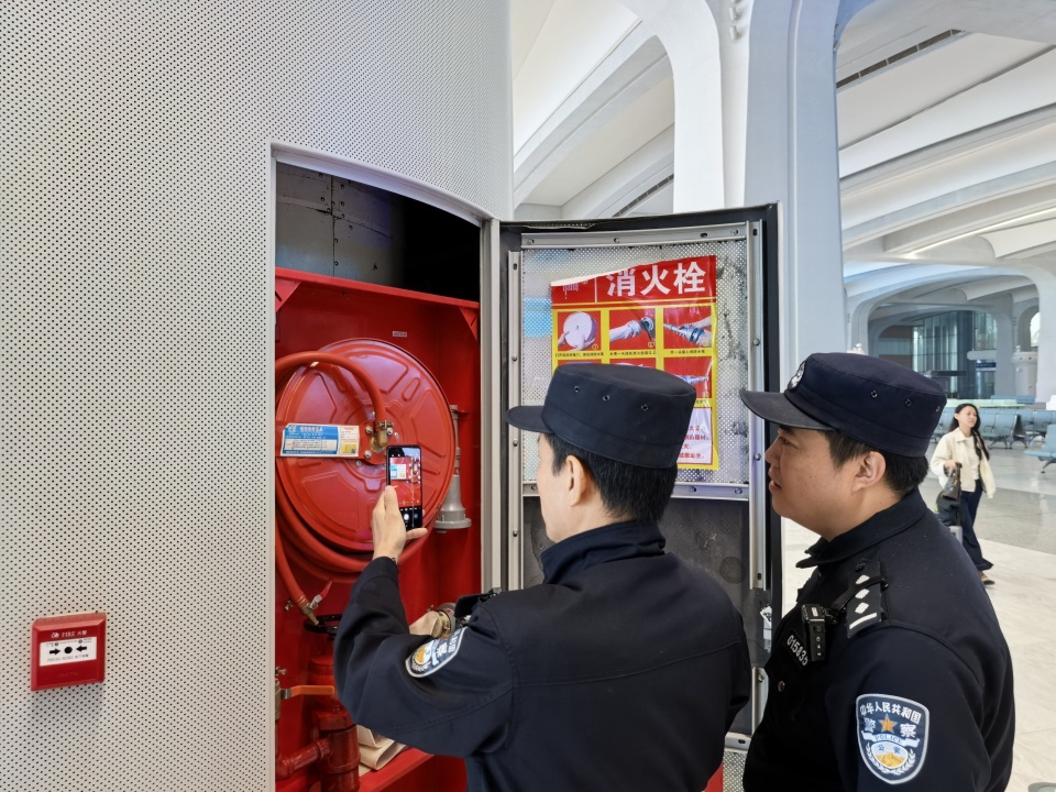 雄安站派出所民警开展消防安全检查。崔策/摄