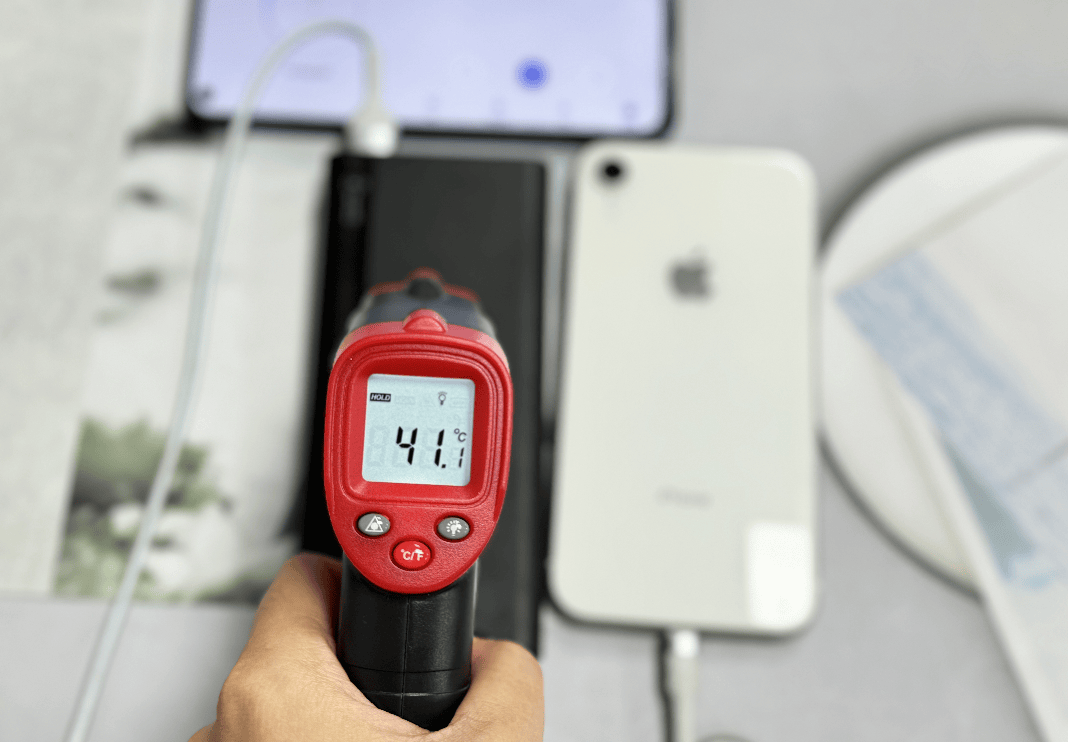 这款充电宝,在手感体验上,40.8℃的机身温度带来轻微发烫感,在充电过程中需要注意一下散热。倍思这一款充电宝在控温技术上是采用了NTC智能控温阵列的,控温散热上还是在一个正常的范围内。