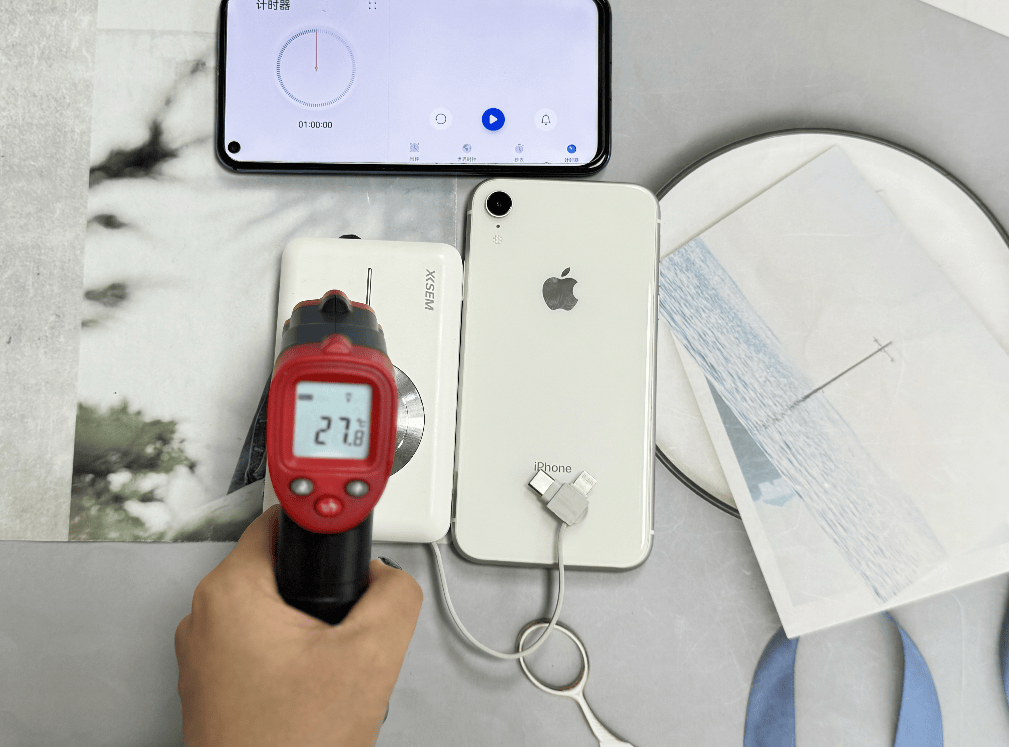 充电效率决定了充电宝的实用性,高效充电宝能快速为设备充电,即使多设备同时充电也能保持稳定输出。反之,低效充电宝充电慢,无法应对紧急需求。下面我们通过模拟日常场景,测试了三款充电宝给iPhone XR设备充电,从1%充到100%,记录每款所需的时间,评估它们的充电效率