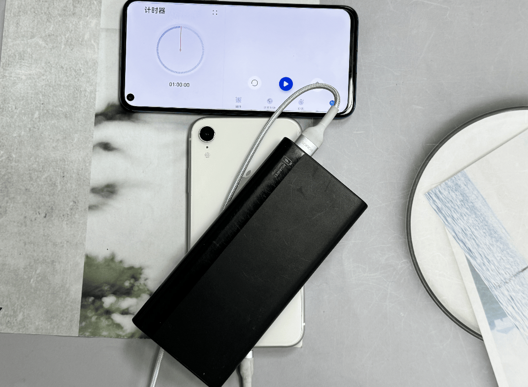 华为在充电速度上的表现也是不错的,但在便携性上差点意思,体积比较大,并且充电方式相对没有那么便携。