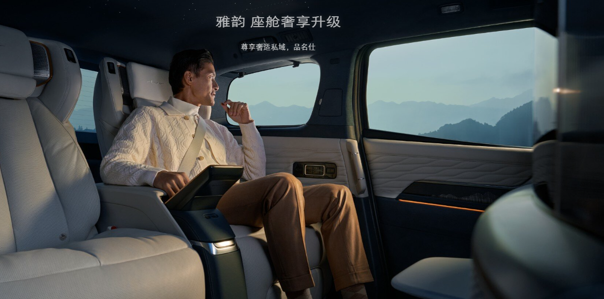 四座版车型配备后排座椅长滑轨、迎宾模式、星空车顶、前后舱对讲系统、32英寸可升降前后排隔断屏幕、BOSE音响、13L冰箱、座椅按摩及128色动态氛围灯等豪华配置。六座与七座版车型则新增15.6英寸后排吸顶屏,并支持应用程序下载,进一步提升了后排娱乐体验。