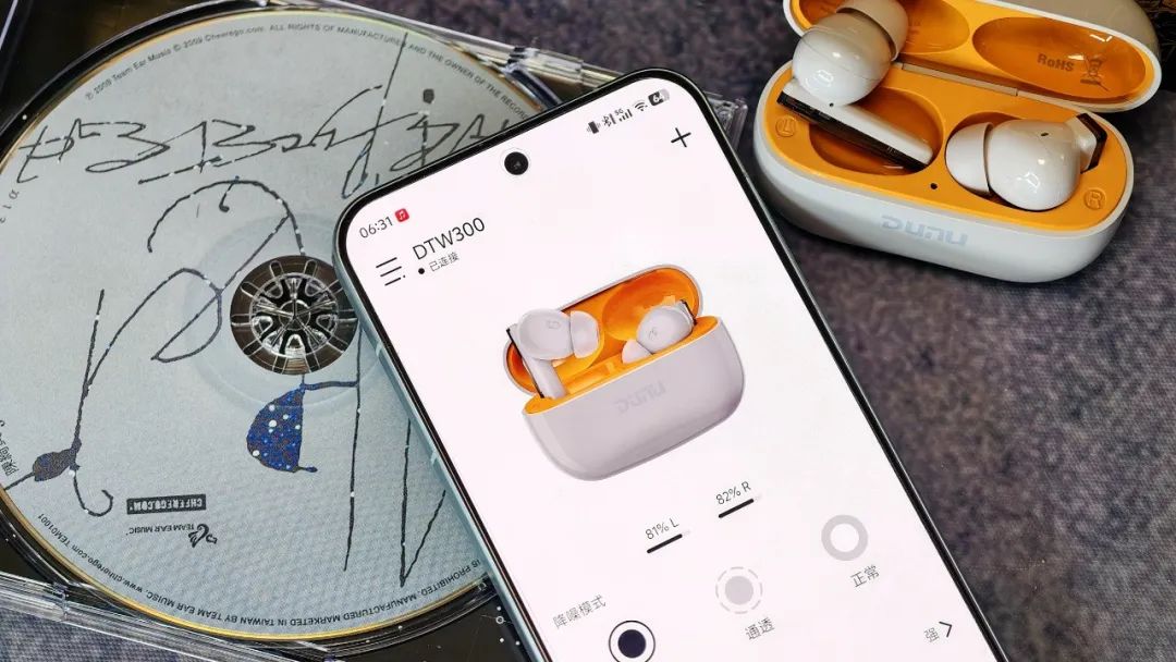咱抛开参数直接点吧:我觉得达音科DTW300的主动降噪水平,综合体验上已经逼近或持平了主流手机品牌中档产品的水平,打开之后能做到“瞬间让世界安静下来”,而这个安静程度则到不了那种让你忽然觉得“我去这空气怎么忽然被抽干了似的,我是不是聋了?”的地步,比如你就站在原处暂停播放音乐看着一辆汽车路过,它不会让你觉得这车完全静音,胎噪路噪和发动机的声音还是会有轻微感知,但这些噪音又很明确的被滤除掉一大截了,已经不会令人烦扰。坦白说跟那种定价四位数的现役手机品牌旗舰TWS比起来,这个降噪深度还是会逊色一筹,而若是作为一副定价不高的TWS来说它则绝对值回票价(还不知道定价,不过考虑到达音科一贯在这件事上手狠,我肯定不敢猜太高)。