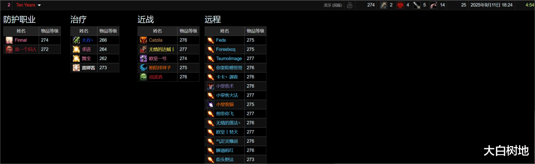 根据WCL数据,《TenYears》的战斗中有12名输出职业获得满分100分,远超2024年外服“0上天”冰龙记录中仅5名满分的成绩。在30%BUFF的加持下,团队将H巫妖王的狂暴时间从常规的8分钟压缩至5分30秒,输出强度提升40%。对比其他强力团队: