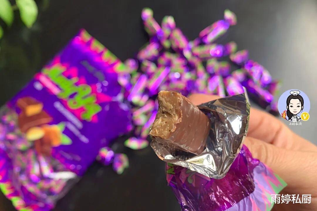 就因为它裹着紫色糖衣,就叫紫皮糖?名字起得够随意!但好味道可是实打实的!连不爱吃糖的人,尝一口也会忍不住来一块!婚礼喜糖里最抢手的,经常就是它!有点像花生酥,又有点像牛轧糖,但没那么甜腻!外层裹着丝滑巧克力,嚼起来口感超丰富!浓香酥脆,越嚼越上瘾!舌尖简直要快乐地跳舞,连亲亲都带着甜香,人间值得啊!