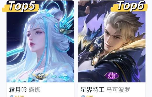 第五、第六就不出意外了,由于部分新皮肤的挤压,马可、露娜也就顺延到了末端,如果后续再出年限的话,掉到10名开外也说不定。