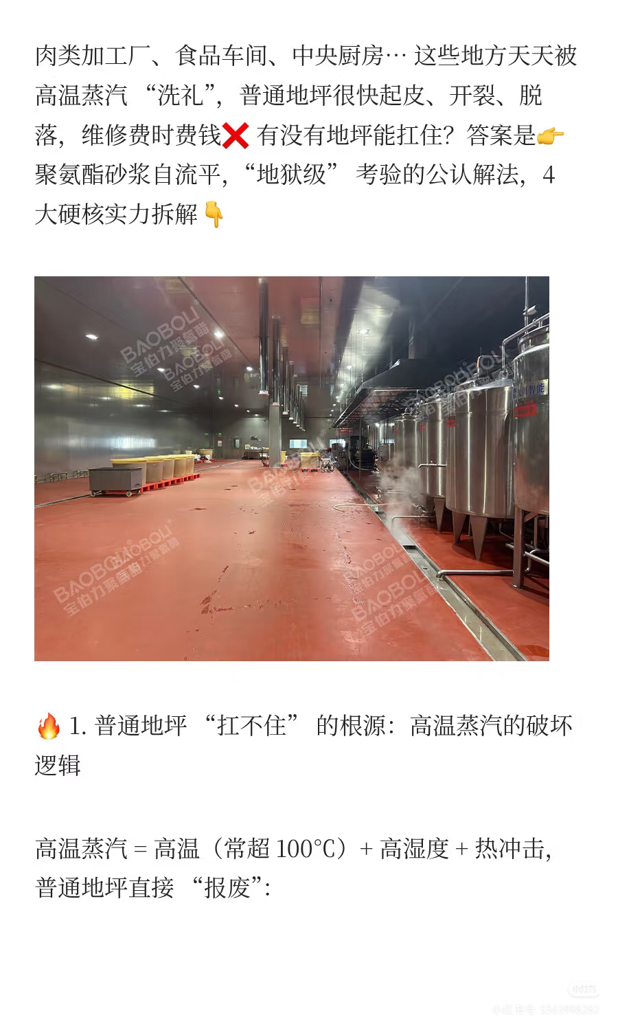 高温蒸汽天天熏,什么地坪能顶住?聚氨酯砂浆行不行?