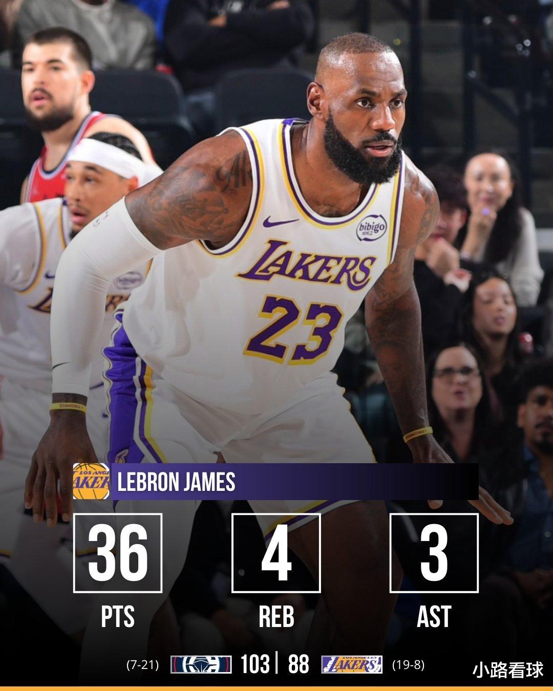 詹姆斯并没有辜负球迷的期待,全场出战37分钟,28投15中,其中三分球7投3中,罚球5投3中,轰下36分4篮板3助攻2抢断,这是詹姆斯本赛季第一次30+,也是时隔10个月再次拿到35+,其中第四节独得12分,差点带领湖人的替补完成逆转,可惜最终还是差了一口气,值得一提的是,凭借本场比赛的表现,詹姆斯超越诺维茨基,正式成为NBA史上单场得分30+最年长的球员,这是詹姆斯的荣誉,却也是湖人的耻辱,没有错,在拥有东契奇这样年轻巨星的情况下,在休赛期引进了一群优质替补的情况下,湖人居然还在啃老,这本身就足够讽刺了。