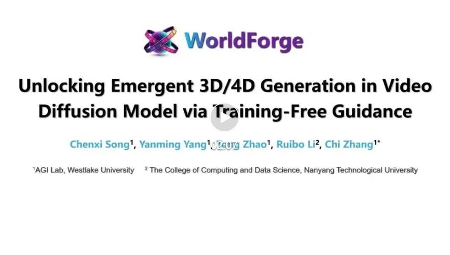 西湖大学 AGI 实验室的研究团队给出了他们的答案。他们提出了名为 WorldForge 的全新框架,以一种 “即插即用” 的推理时引导方式,在不改动任何权重的前提下,为视频扩散模型装上了一个 “导演大脑”,成功实现了单图到 360° 世界生成和电影级视频轨迹重运镜。