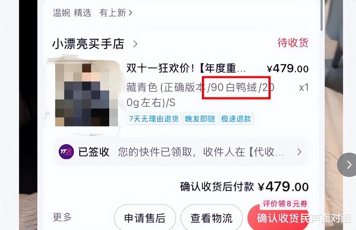 百万粉丝网红店所售羽绒服飞丝,5件中有3件不合格