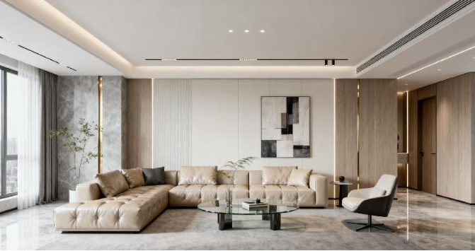 想象一下,你可以在客厅天花板边缘嵌入LED灯带,通过手机APP控制光的颜色和亮度。周末晚上,一键切换至“影院模式”,灯光自动调暗,只留下柔和的背景光。