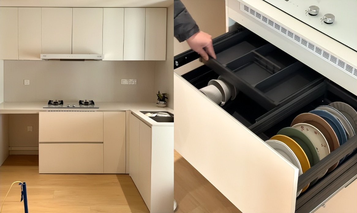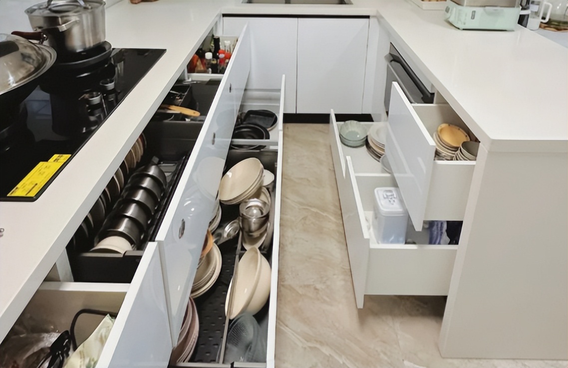 想要解决这个问题很简单,在设计的时候,将橱柜收纳转变成抽屉收纳,
