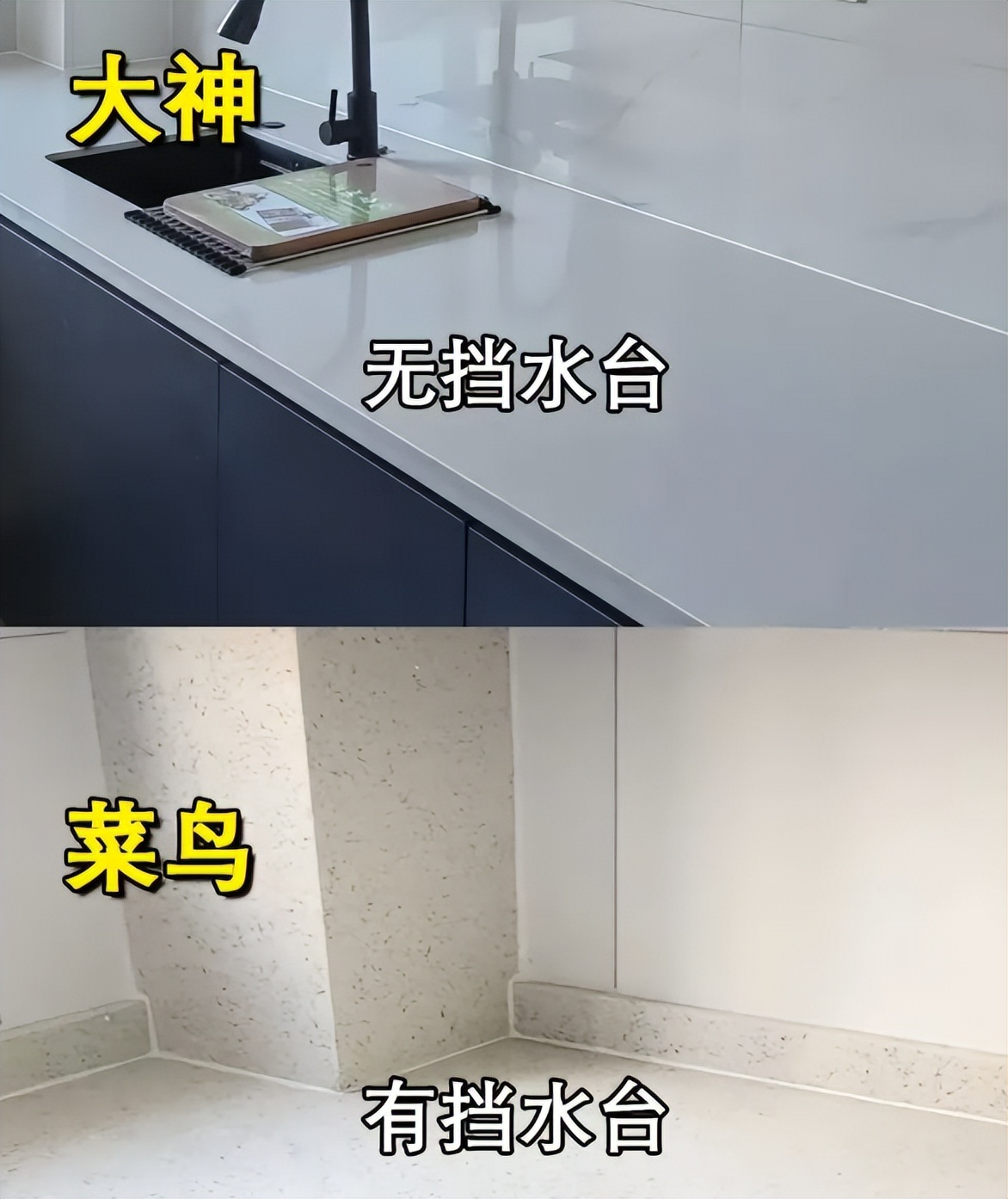 我第一次装修不懂,听了装修师傅的推荐,在厨房都台面做上了挡水条,