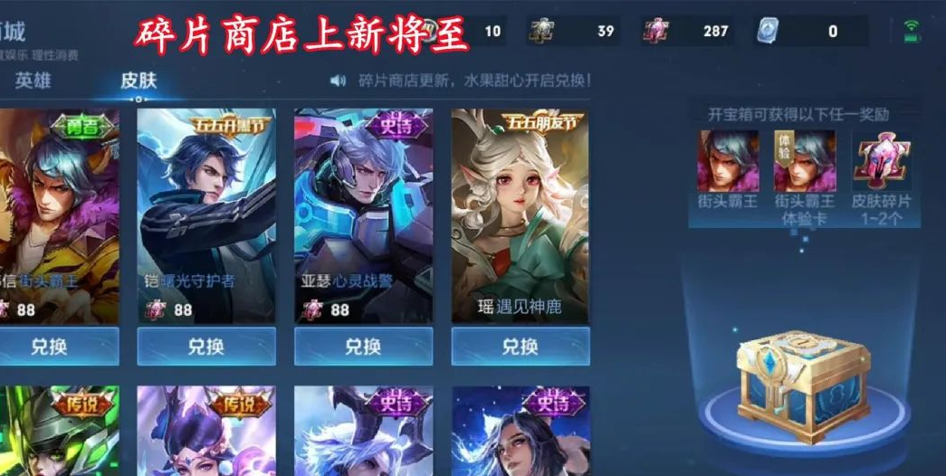 碎片商店也有一段时间没有进行更新了,后续游戏更新以后,碎片商店也将会进行更新。到时候多款史诗皮肤也将会再次上架了,例如阿轲的暗夜猫娘、安琪拉的心灵骇客、李元芳的逐浪之夏等史诗皮肤,到时候就可以直接用碎片兑换了。