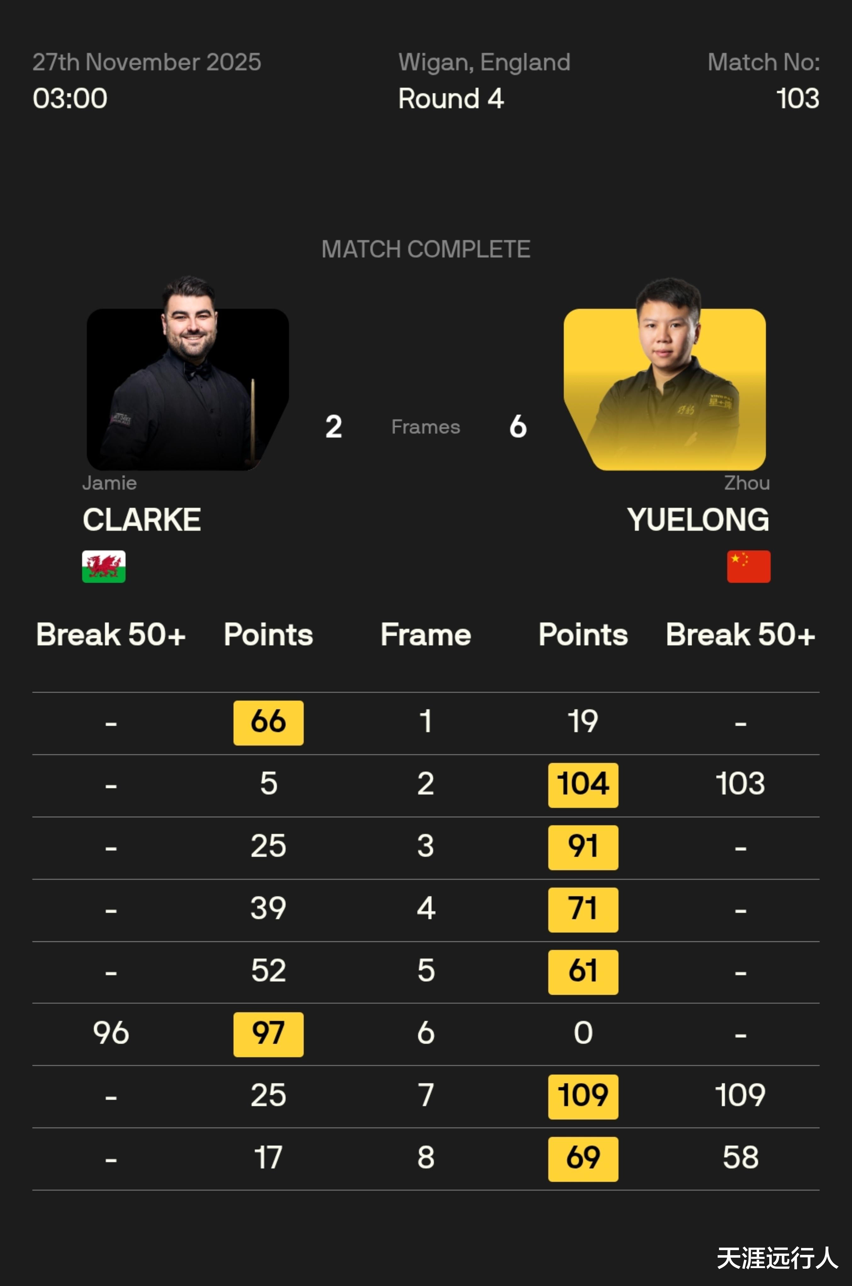 周跃龙强势挥拳,6-2力压杰米·克拉克,吕昊天抗压能力暴增,6-5险胜米歇尔·曼恩,袁思俊3-1领先,遭刺客的一波五连鞭逆袭,生涯依然与巴比肯中心无缘。
