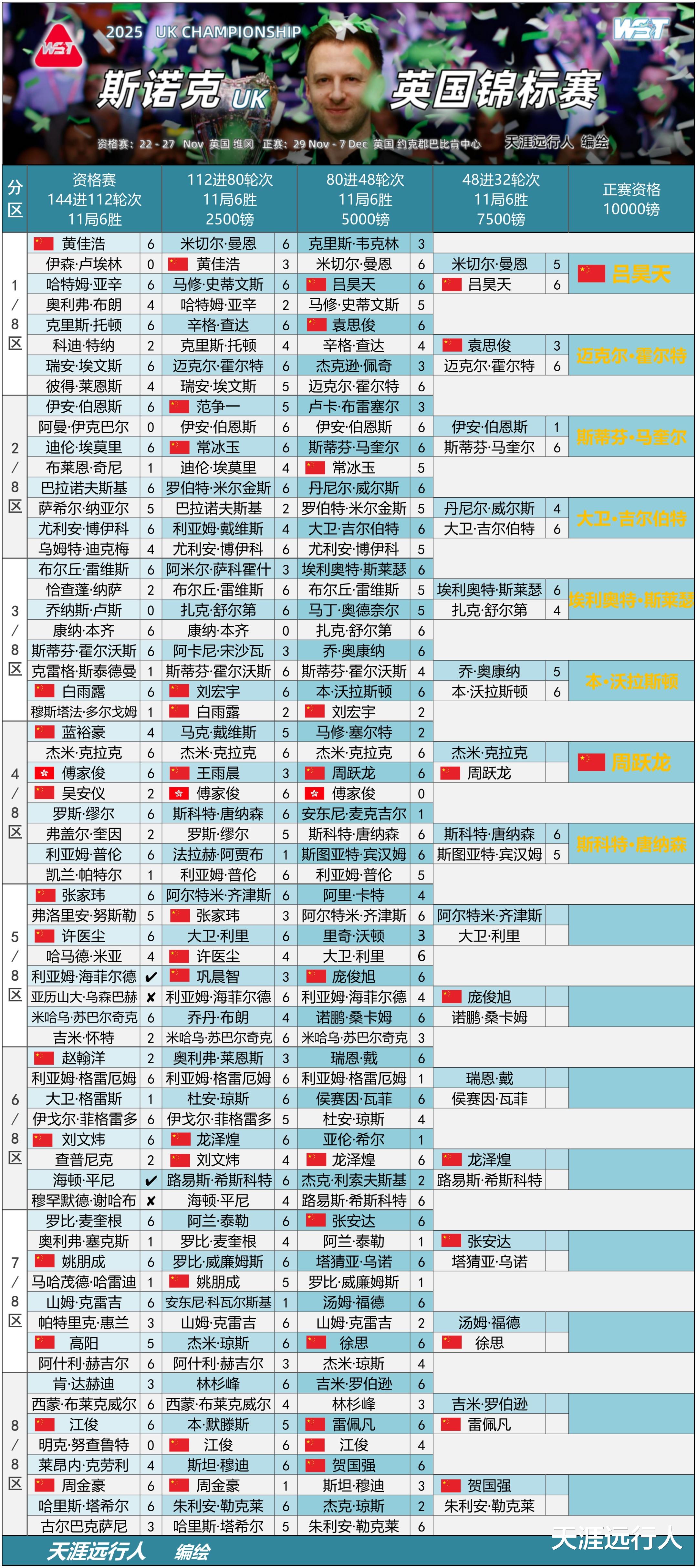 最新即时更新2025斯诺克英国锦标赛资格赛进程签表