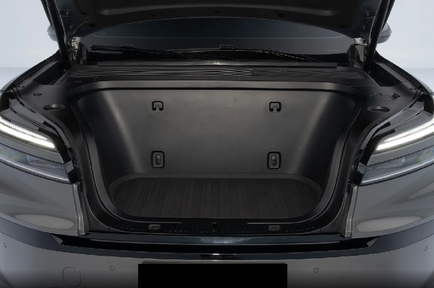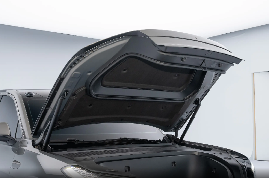 得益于纯电架构设计,乐道L90的前引擎舱盖下面有着非常可观的空间表现。开启这款车引擎盖的操作很有意思,轻轻敲击前机盖前方的固定位置,机盖就会自动弹开。区别于传统的前备箱,乐道L90前机盖打开以后,前备箱的前方是一段宽大的开口,内部容积达到240升。当然不只是空间大而已,因为内部空间支持干湿分离和脏净分离的收纳,所以它也可以变成钓鱼爱好者的固定钓台,开车钓鱼直接一步到位,无需再小心翼翼地将车尾对准钓鱼位置。