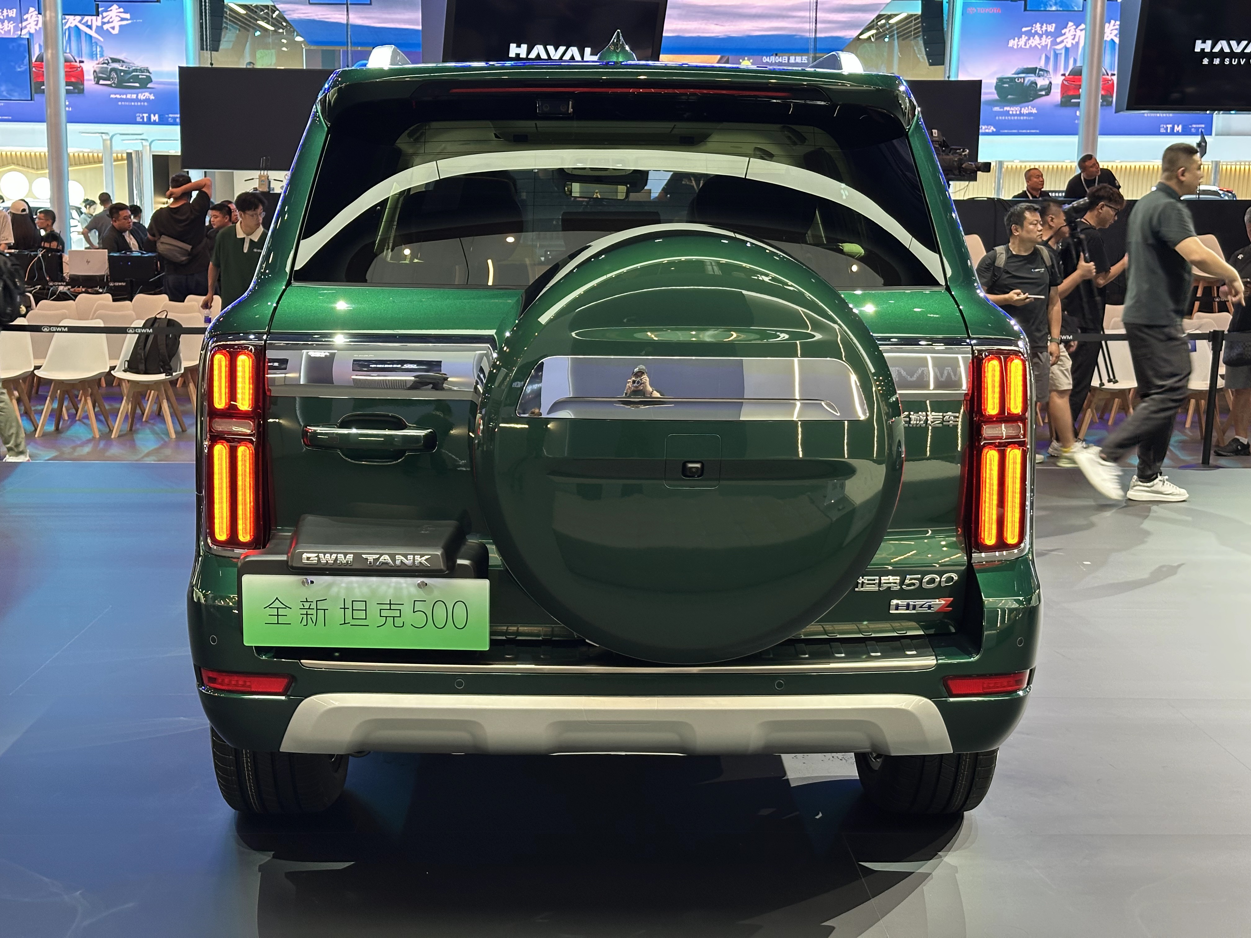 新款坦克500车侧及尾部设计基本不变,配备竖向LED灯带、外挂式备胎等,但尾部标识调整,现款牌照架上方的“长城坦克越野”改为“GWM TANK”,外挂式备胎右侧增加“长城汽车”标识。尺寸方面,新款坦克500长宽高分别为5078/1934/1905毫米,轴距2850毫米,各项数据均与在售车型保持一致。