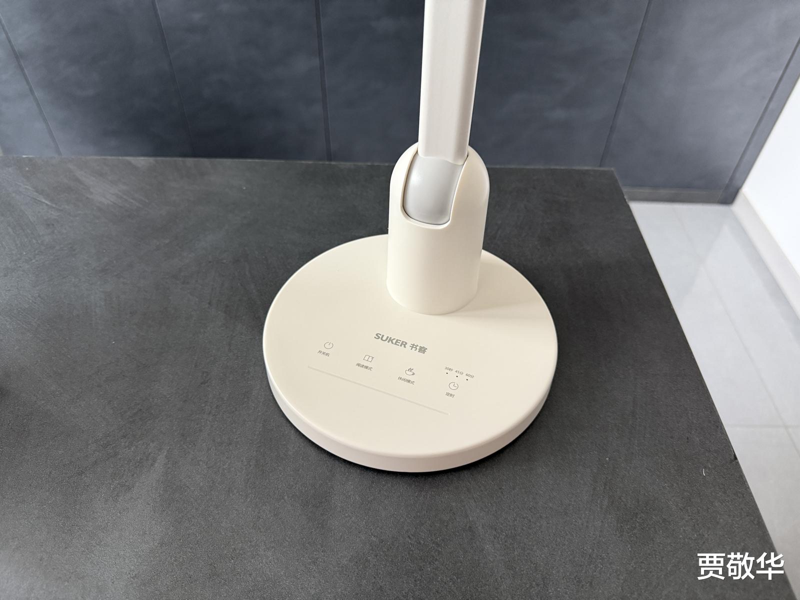 底座的面板上,有4个功能按键,还有一个亮度调节条。功能按键有文字说明,小朋友也能轻松上手。虽说有些台灯可以通过手机App控制台灯,小孩子写作业还要先拿手机调节台灯亮度,太麻烦。平时写作业的时候,我家小外孙直接按下电源键就可以。如果看书,可以直接开启阅读模式。