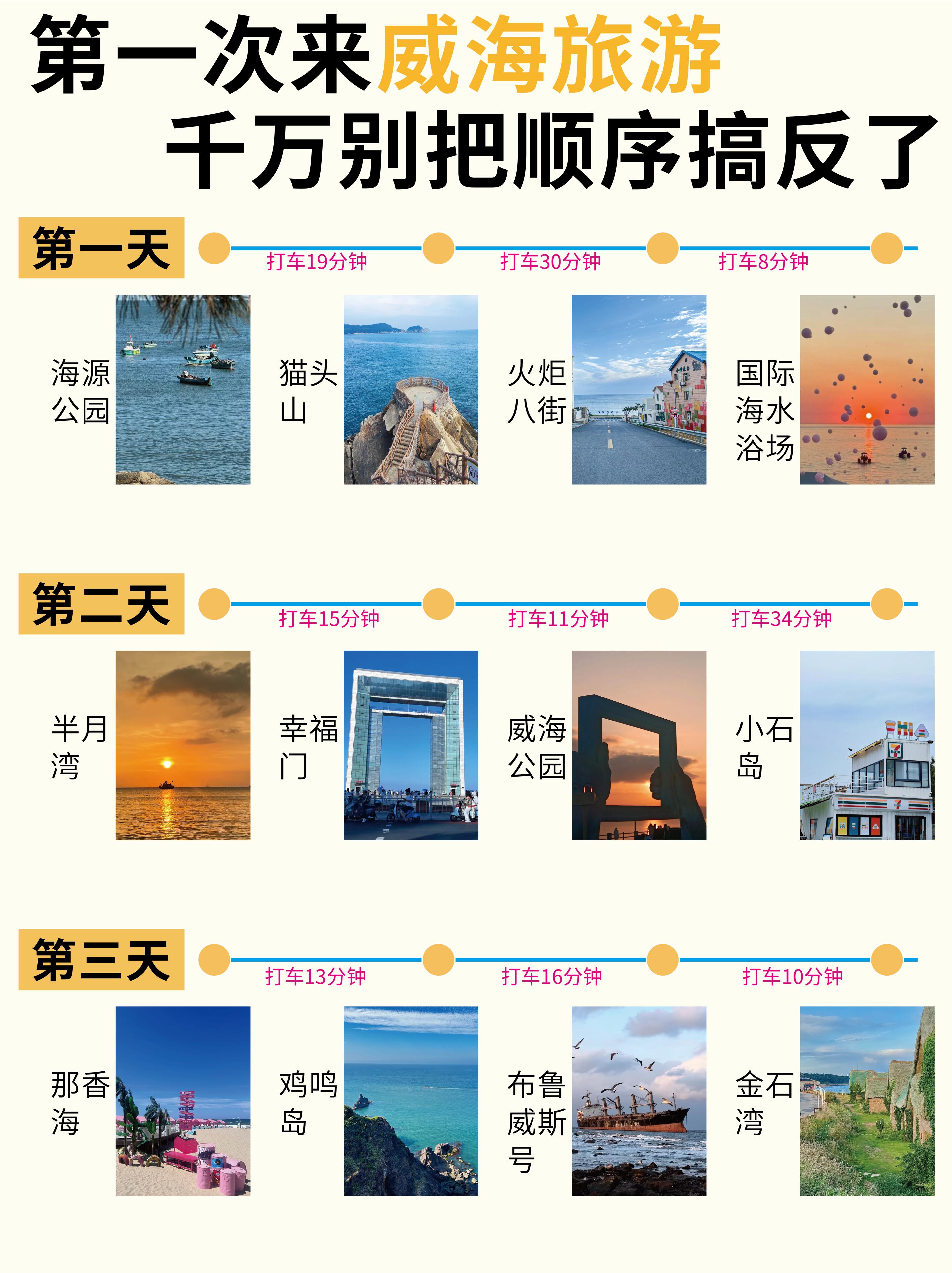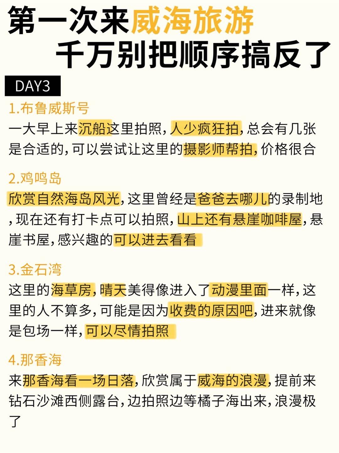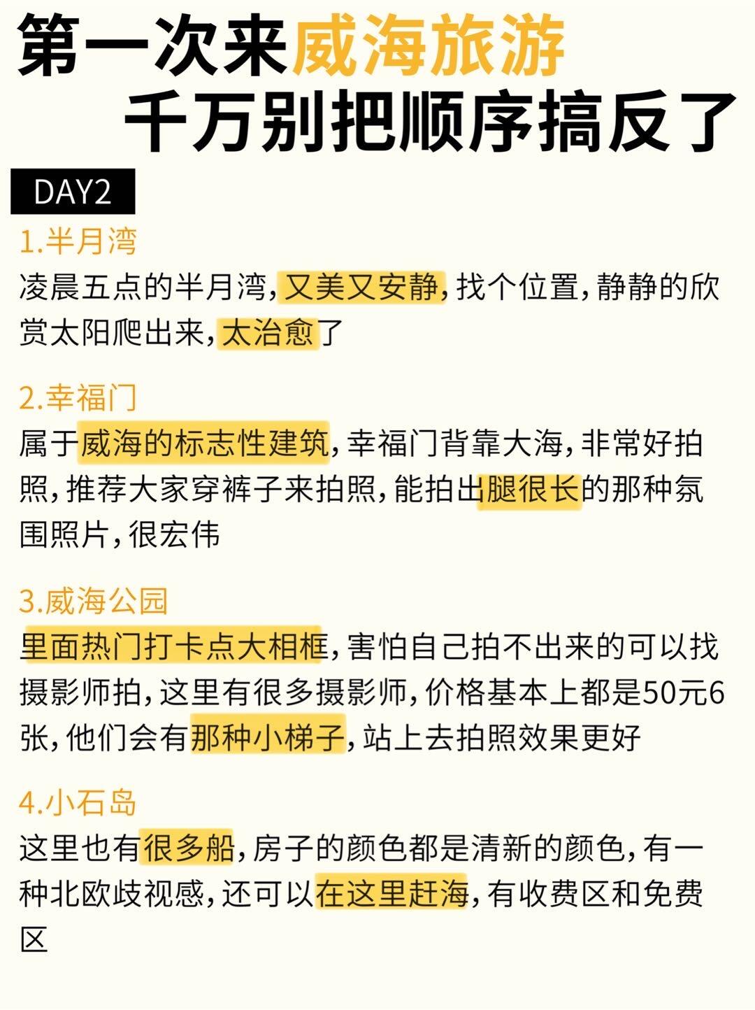 ✅酒店可以提前预定一下🈯️,价格更合适🤝✅威海景点有点分散,打网约车🛻也很合适,很方便,但别打黑🖤车,要用正规平台打车🚗