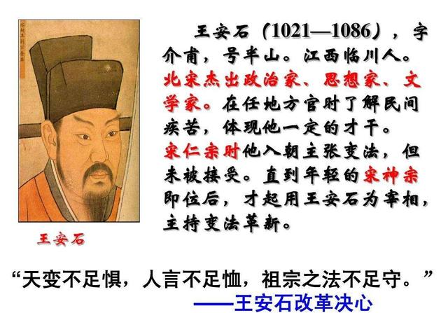 二十一岁进士及第后,他主政地方,深知社会的弊端,积极主张改革。他的改革主张得到了励精图治的宋神宗认