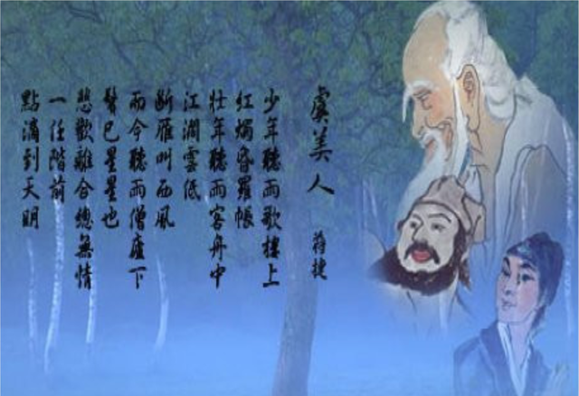 蒋捷在晚年之际,写下了这首《虞美人》,抒发了他的亡国之痛。全词以“听雨”为媒介,将少年、壮年和晚年时期听雨的不同感受,形成三幅画面,少年只知追欢逐笑享受陶醉;壮年飘泊孤苦、触景伤怀;老年的寂寞孤独,一生的悲欢离合,尽在雨声中体现。