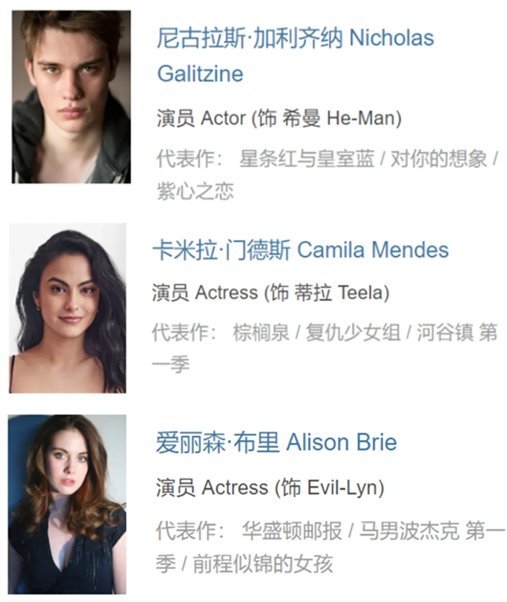 此前影片已经确定了饰演希曼、蒂拉、邪恶琳的三位演员: