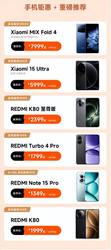 这场大促的含金量,实实在在地体现在产品价格上。在备受关注的手机赛道,一场“技术普惠”的风潮正借势优惠展开。旗舰机型如小米MIX Fold 4降价千元,无疑降低了消费者体验前沿折叠屏技术的门槛。